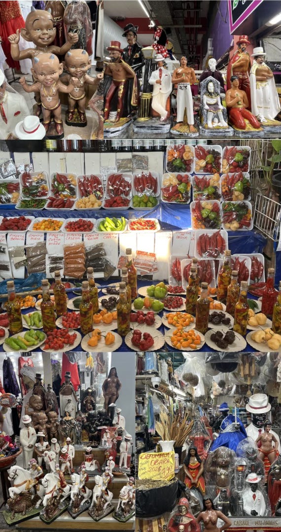 Au marché central, il y a plein de magasins qui vendent des trucs religieux destinés aux cultes afro-brésiliens : yoruba, candomblé et umbanda. Ce sont des religions syncrétiques nées au Brésil, et qui fusionnent des traditions animistes africaines , le catholicisme et des éléments indigènes. Ils sont basés sur le culte des orixás (divinités), la transe, les chants, la danse et le lien avec la nature.