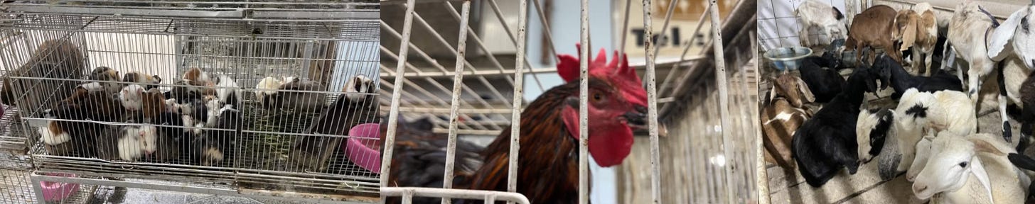 Plus étonnant encore : des cages remplies de poules, de canards, de hamsters ou de chèvres. Je me suis amusé à demander à mes proches la raison pour laquelle, à leur avis, ces animaux étaient en vente. Voici un florilège de vos propositions.