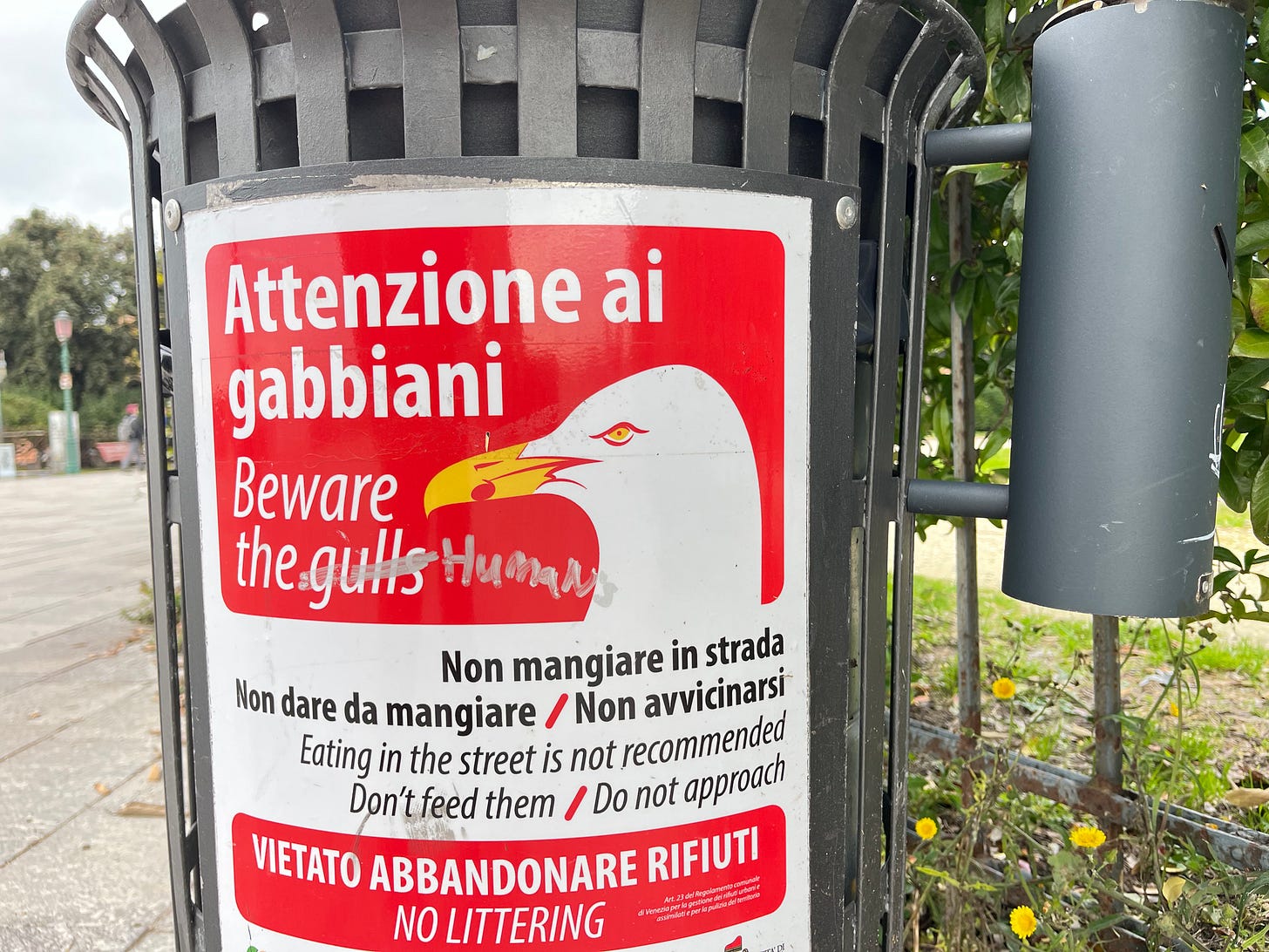 Parlons toponymie. Grosso modo il n’y a que six noms de rues à Venise, correspondant aux six sestieri (sixième de ville, tout comme le quartiere — le quartier — est donc… la ville coupée en quatre, vous le saviez pas ça hein). La numérotation, qui date des Autrichiens, était sans doute logique à l’époque, mais actuellement totalement confusionnante. Pour épicer le bazar, certains noms apparaissent plusieurs fois dans la voirie : il y a 11 calle della Madonna et 20 calle del forno. Résultat ? Facteur c’est vraiment un métier pourri ici.